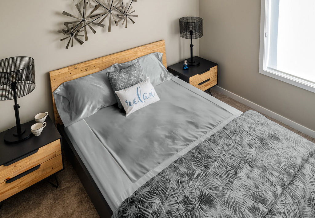 寝心地のよさにこだわり設計されたシーツが、今までにない高級感と動きやすさを提供します。センター部分に配したサテン生地のパネルは、寝ている間の動きを妨げず、スムーズな動きをサポートします。さらに、パネルの周りの生地が、程よいグリップの働きをするため、簡単に寝返りを打ったり、体勢を変えることができます。シーツの両側には、高摩擦素材を配しているため、ベッドからの転落防止の機能を果たします。
